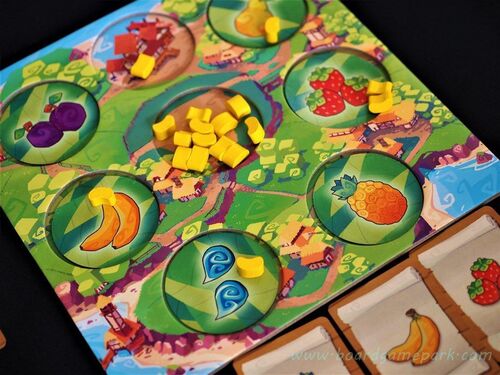 古典ボードゲーム「マンカラ」をベースにした農園づくりがテーマのボードゲーム「くだものあつめ(Fruits Picking)」です。もともと同人ゲームとして国内で販売されていた作品が海外で発売。それが逆輸入されて一般発売されたバージョンとなります。 くだもの…